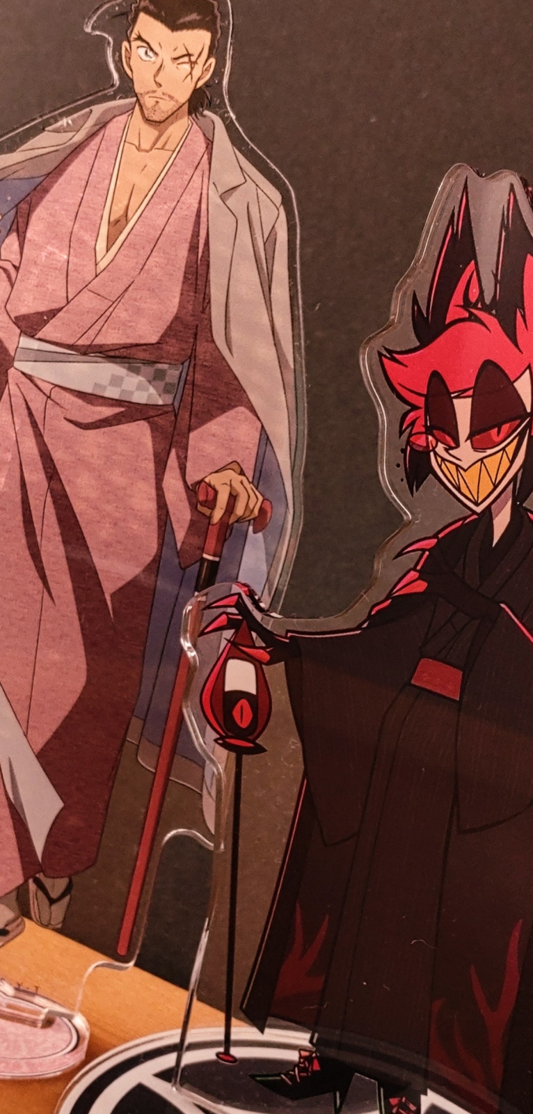 --- 2025.10.08 16:37 --- 買っちゃったぇ〜〜〜メイトのハズビングッズ良すぎでは???通販予約爆死したので、発売日店舗へ行ってみたら既に枯れてて血涙アラスターはギリ買えた…ありがてぇてぇうちの敢ちゃんと並べてみたら若干属性被ってて笑った私の癖がまたひとつ無事に詳らかになりましたフッヘヘしかしアクスタは撮るのムツカシイネ…令和のオタクスキルあげてこ!